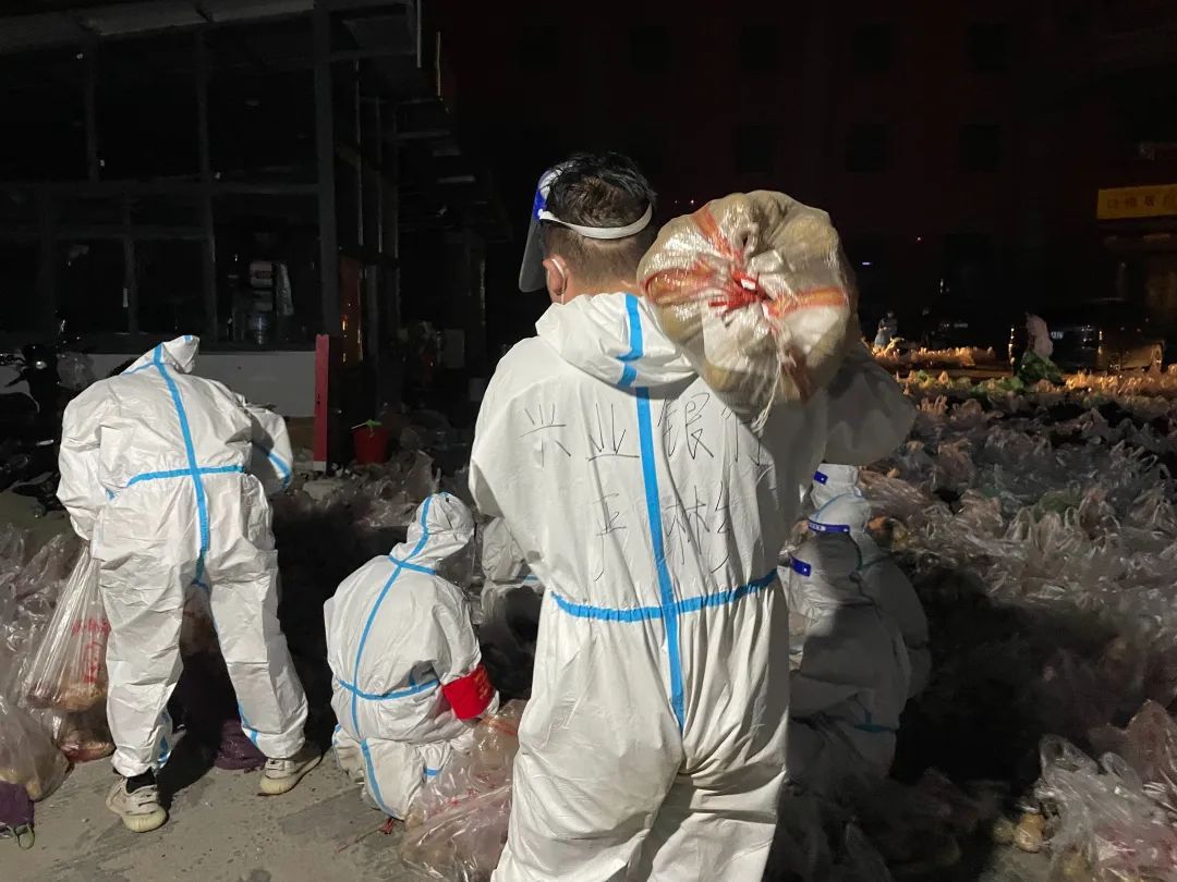 从拿到塑料袋一直没有停下来,直到凌晨1点,物资搬运和分发才完成;