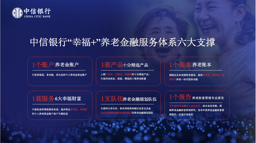 ¡¡¡¡ÖµµÃ¹Ø×¢µÄÊÇ£¬ÖÐÐÅÒøÐв»½öΪδÀÏÈËȺÌá¹©ÑøÀϲƸ»¹æ»®·þÎñ£¬Ò²ÎªÒÑÀÏÈËȺÌṩ·á¸»µÄÑøÀϽðÈÚ+·Ç½ðÈÚ·þÎñ£¬ÔÚÑøÀÏÕ˱¾µÄ“ÐÒ¸£+¾ãÀÖ²¿”¹¦ÄÜÇø£¬¿Í»§¿ÉÒÔ¿´µ½ÎªÀÏÄê¿Í»§ÌṩµÄ²Æ¸»¡¢½¡¿µ¡¢Ñ§Ôº¡¢ÓŻݡ¢Îę̀¡¢´«³ÐÁù´ó·þÎñÌåϵ£¬ÒÔÂú×ã¿Í»§“ÀÏÓÐËùÑø¡¢ÀÏÓÐËùÒ½¡¢ÀÏÓÐËùÏí¡¢ÀÏÓÐËùѧ¡¢ÀÏÓÐËùÓΡ¢ÀÏÓÐËùÀÖ”µÄÆ·ÖÊÑøÀÏÐèÇó¡£