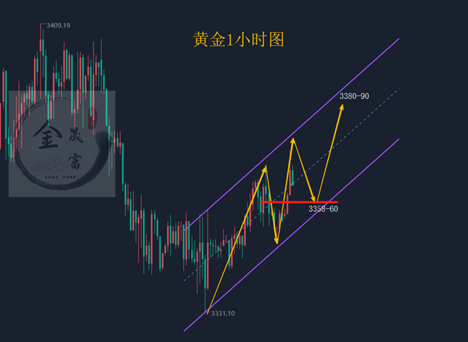 小周期已经形圆弧底形态,给看涨有了明确的基础,早盘黄金直接走高至3375附近,那么,看涨不追涨,亚欧盘看一下调整空间后再做顺势多单,下方支撑关注两个点3360,3350,回落至关键点可以根据实际情况再做有效多单,上方就看3390目标点。综合来看,今日黄金短线操作思路上金晟富建议回调做多为主,反弹做空为辅,上方短期重点关注3380-3390一线阻力,下方短期重点关注3355-3360一线支撑,各位朋友一定要跟上节奏。要控制好仓位及止损问题、严格设止损,切勿抗单操作。具体点位以盘中实时为主,欢迎前来体验,交流实时行情,进群关注实时单。