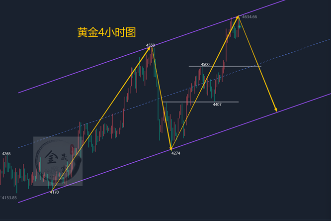 黄金技术面分析:黄金今天给的点位进场是相当的精准,不知道你们有没有跟上?技术面从黄金日线结构图来看,上周黄金持续居高震荡后,短线方向已经很纠结,目前黄金上涨后回落有顶部形构图,今天要注意周期变化!在黄金阶段性突破4550后,连续一个交易的上涨,现在黄金已经走高至4634,也就是说,黄金向上突破了80多美金,其实这个力度不管走多少都合理,属于市场正常的避险价值体现,前面强调的,黄金上涨后不猜顶,也就基于这个原则。那么,在原则之内,如果要出现调整空间,也需要做出应对策略,周一的大涨,周二技术面日线表现不明显,但4小时周期开始有顶部形态,或有一波较大的调整空间,目前连阴下行确定,今天可能会继续走低至4550,4500,如果这样走出来,那么,日线收阴,周二调整后,本周黄金就是一个高位震荡了。所以,自4630开始到4500这波大空间也需要关注。从今天开始可以尝试性做高空看回落空间,下方至少看到4520/4500。
