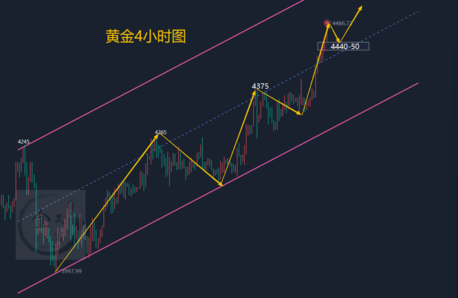今日需持续重点关注5日均线的支撑有效性,当前该支撑区域位于4450-4445区间,此区间恰为前期高点位置。若金价出现回落,需重点观察该区域的顶底转换支撑效果。上方阻力方面,重点关注4500区域,该区域为黄金自12月11日上涨以来,由高低点连线形成的上涨通道上沿阻力位,同时也是今天高点附近。下方支撑首先关注四小时级别MA5均线,昨日金价全程运行于该均线上方,今日若能维持在MA5均线上方,可延续极强格局判断。现在黄金每天新高,可以肯定是顺势做多行情,但又何尝不会在这里恐高呢。距离欧美圣诞节也来越接近了,按道理市场的交投量应该是越来越少,而是不是像现在那么活跃,所以现在市场异象重生,有点不太好做。原则上只要趋势不变,就可以做顺势交易,但现在价格较高,只能等待回来调整到相对位置再做顺势交易,而在趋势之下,上方也就不要猜顶了,上方可能会到4500,4600整点关口,技术面是无法给出相对于的参考位置。对于日内行情而言,下方的支撑关注两个点,一个是4450支撑,一个是4400支撑,只能等待回落确定下方支撑点后才能做多,亚欧盘如果直接上涨,就随它去,有低多的可以继续持有,没有低多的就空仓观望。综合来看,金晟富黄金短线操作思路上金晟富建议回调做多为主,反弹做空为辅,上方短期重点关注4450-4480一线阻力,下方短期重点关注4385-4390一线支撑,各位朋友一定要跟上节奏。要控制好仓位及止损问题、严格设止损,切勿抗单操作。具体点位以盘中实时为主,欢迎前来体验,交流实时行情,进群关注实时单。